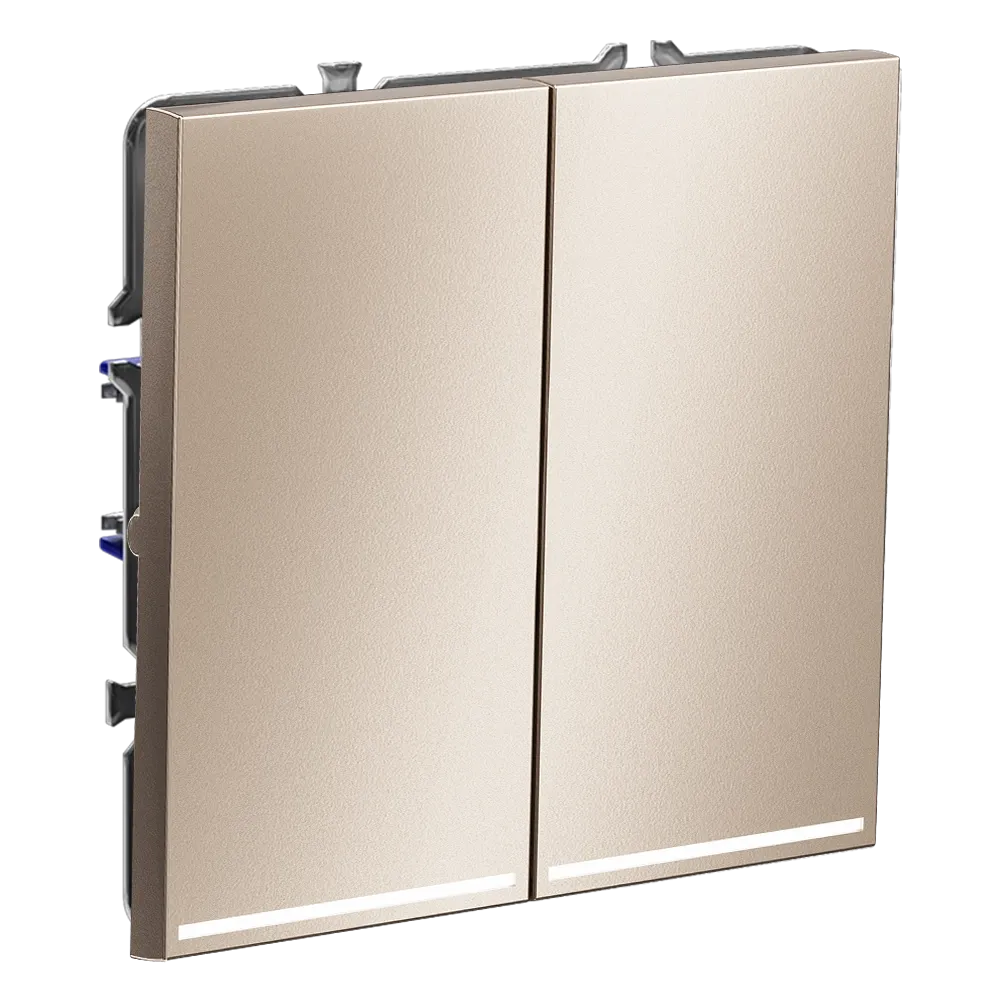 Проходной переключатель встраиваемый VOLTUM S70 двухклавишный с подсветкой 10А (капучино)