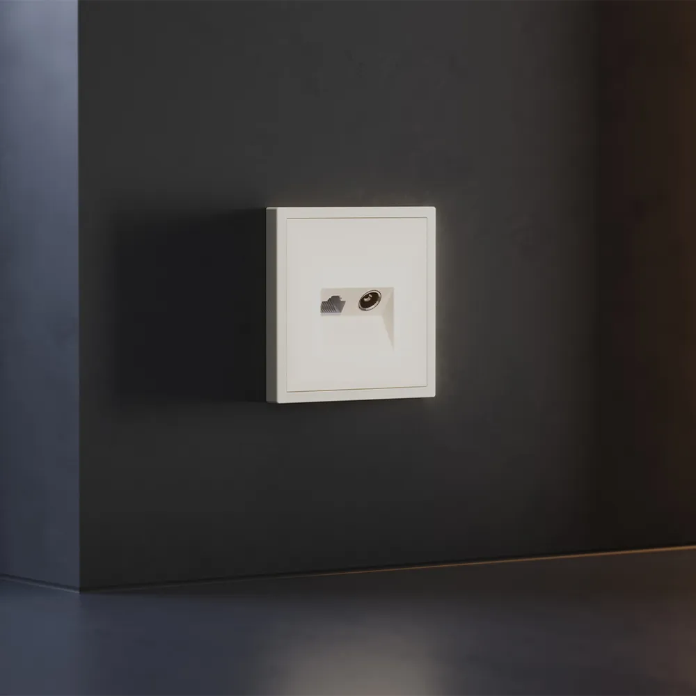 Технологии не обязаны выглядеть холодно. Розетка VOLTUM S70 TV+RJ45 доказывает: даже слаботочные точки подключения могут дарить ощущение уюта. Антенна и гигабитный интернет в одной элегантной накладке нежного бежево-кремового оттенка — где стабильный сигнал встречается с теплом домашней атмосферы.
