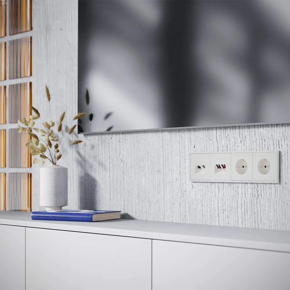 Розетка гармонично сочетается с другими элементами серии S70 в цвете «хлопок»: силовыми розетками, выключателями, диммерами. Создайте целостную композицию у телевизора или в медиа-зоне — где каждая точка подключения говорит на одном языке уюта. А если захотите добавить контраст — 12 цветовых решений и варианты в стекле всегда к вашим услугам.
