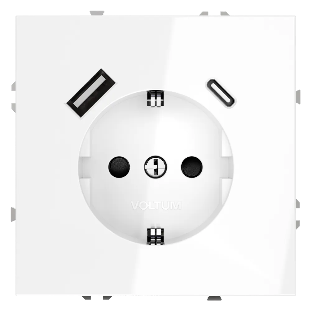 VOLTUM — качество, безопасность и передовые технологии в каждой детали. Выбирая USB-розетку с заземлением, защитой и универсальными портами в белом глянце, вы создаете интерьер будущего — технологичный, удобный и стильный.