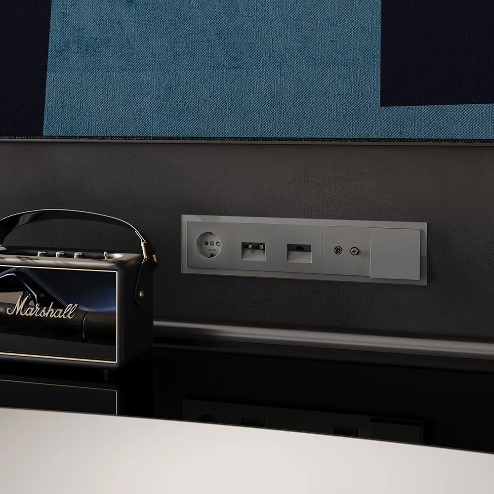 Рамка гармонично вписывается в интерьеры любого стиля — от классики и неоклассики до минимализма, хай-тек и лофта. Она идеально сочетается со всеми механизмами серии S70: розетками, выключателями, диммерами и терморегуляторами — в том же или контрастном цвете.
