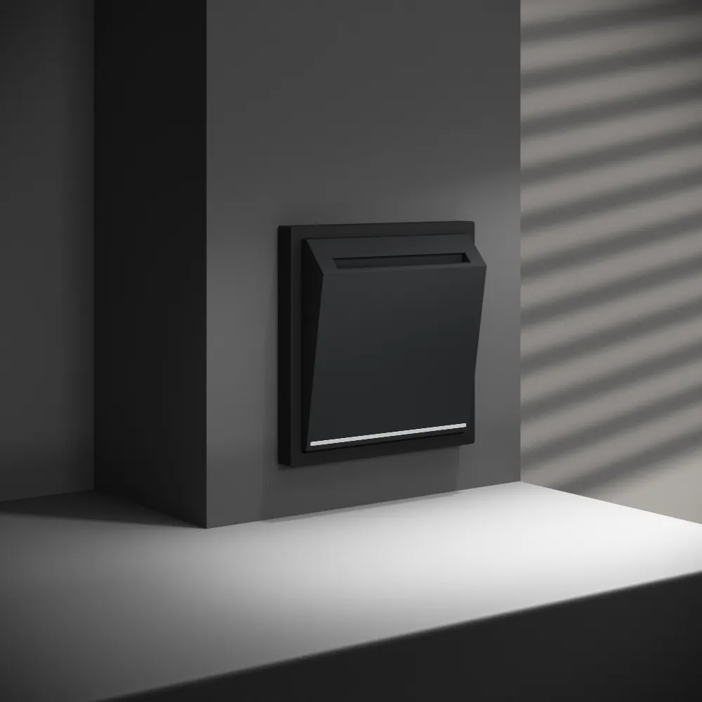 • Черный матовый — универсальный акцент — глубокий чёрный оттенок с покрытием Soft touch не отражает бликов и не собирает отпечатков. На светлых стенах создаёт выразительный контраст, на тёмных — визуально «растворяется», оставляя ощущение цельного пространства. Идеален для отелей любого формата: от минималистичных апарт-отелей до премиальных бутиков с монохромной палитрой.