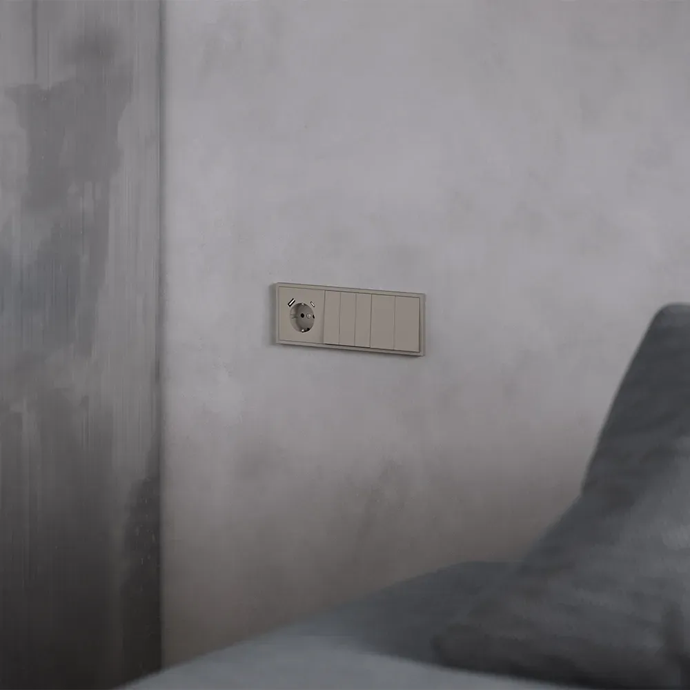 Выключатель полностью совместим с рамками из пластика и закалённого стекла той же серии и гармонично сочетается с другими устройствами VOLTUM S70 — от розеток до терморегуляторов и датчиков движения.