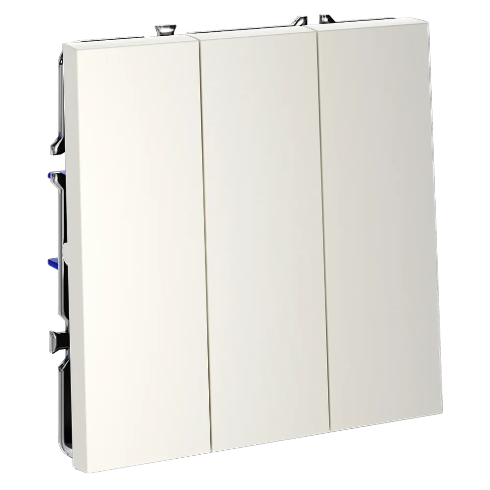 Трехклавишный выключатель VOLTUM S70 в цвете «хлопок» — это элегантное и функциональное решение для управления тремя независимыми световыми зонами из одной точки. Идеально подходит для гостиных, спален, кухонь и прихожих, где требуется раздельное включение основного, декоративного и акцентного освещения.